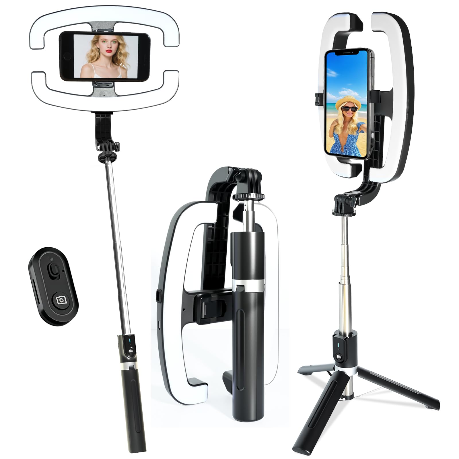 - 【Convenient Bluetooth Remote Control】Equipped with a Bluetooth remote, this selfie stick tripod with light can connect to your phone for remote shooting, allowing you to easily control the shooting timing and never miss any great moments. It's simple to operate and gives you more freedom in shooting