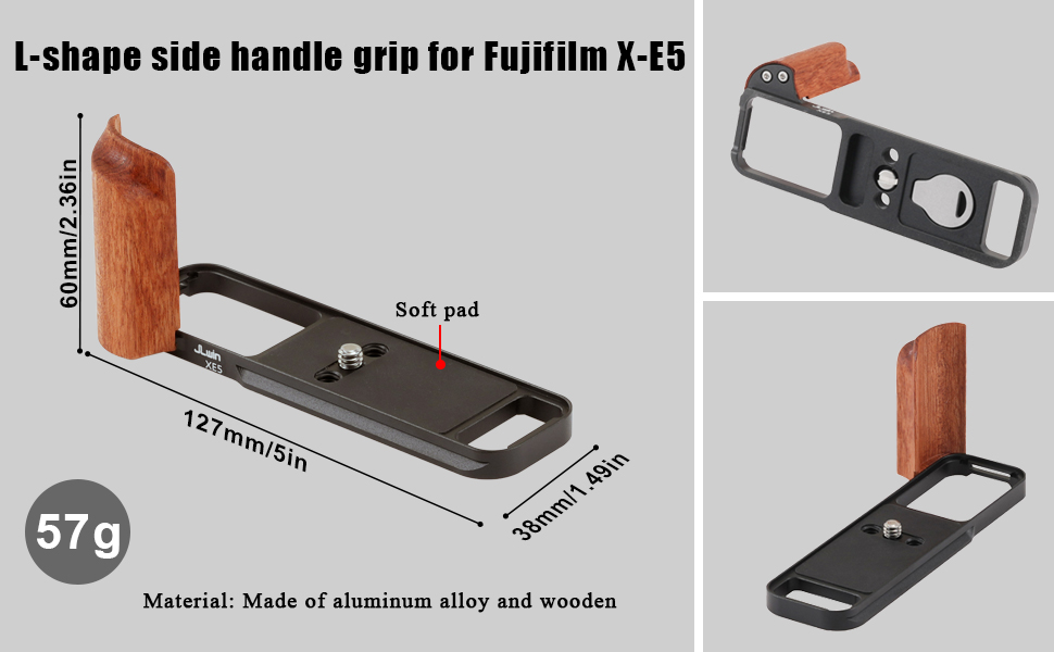 1 x L-shape wooden side handle grip for fujifilm X-E5 camera