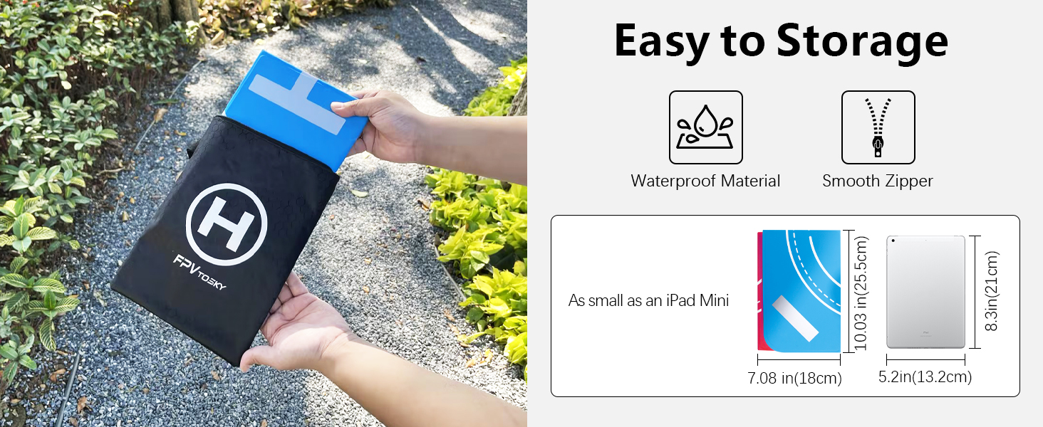 Drone Landing Pad: Fly with confidence and stability using the large 51cm (20-inch) landing pad. It provides a clean, stable take-off and landing surface, preventing dust, grass, and debris from interfering with your drone