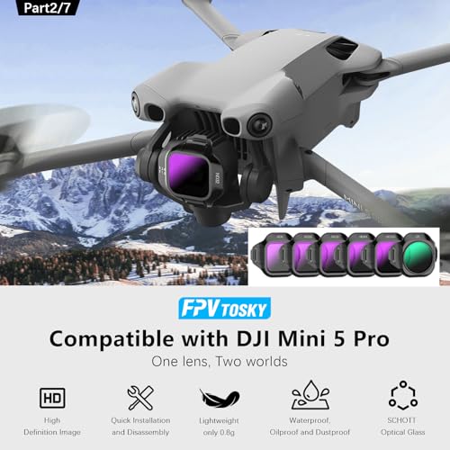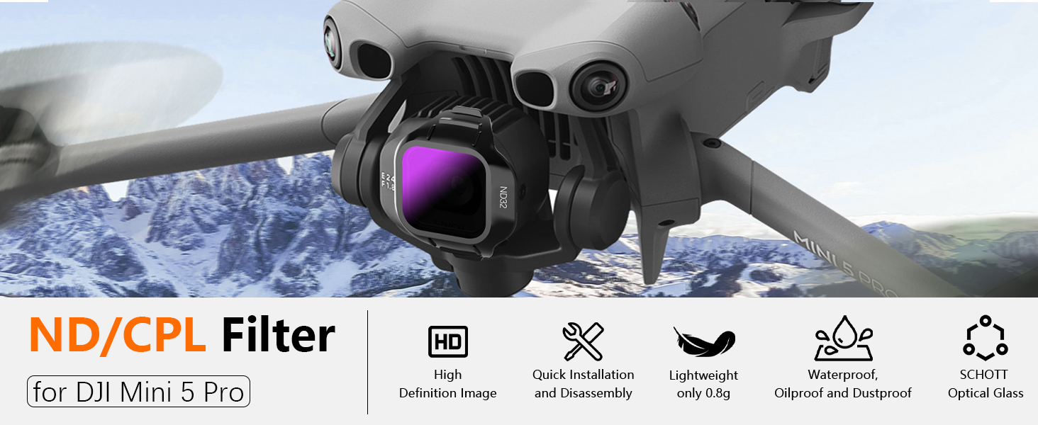 6-PieceCPL+ND Filter Set: Elevate your aerial photography with a dedicated 6-pack lens filter set. This set includes a CPL filter to reduce glare and enhance colors, along with ND8,ND16, ND32,ND64, and ND256 ND filters to control light intake that allows you to achieve perfect exposure and smooth motion blur for professional, cinematic video quality in various lighting conditions
