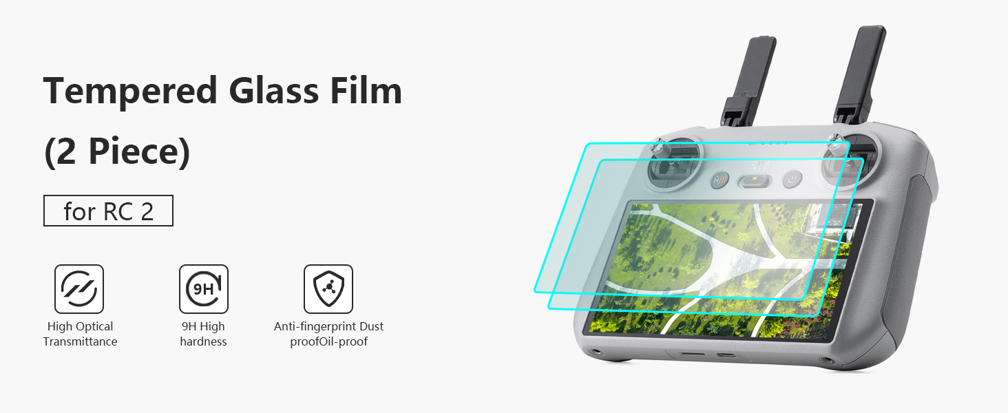 RC2 Screen Protector: Crafted from 9H tempered glass, it safeguards the DJI Mini 5 Pro RC2 controller screen against scratches and shattering. Preserves true colour reproduction while maintaining responsive touch sensitivity
