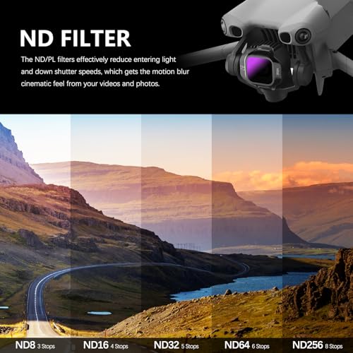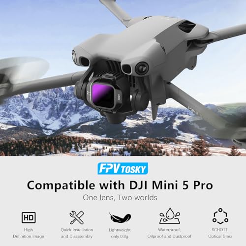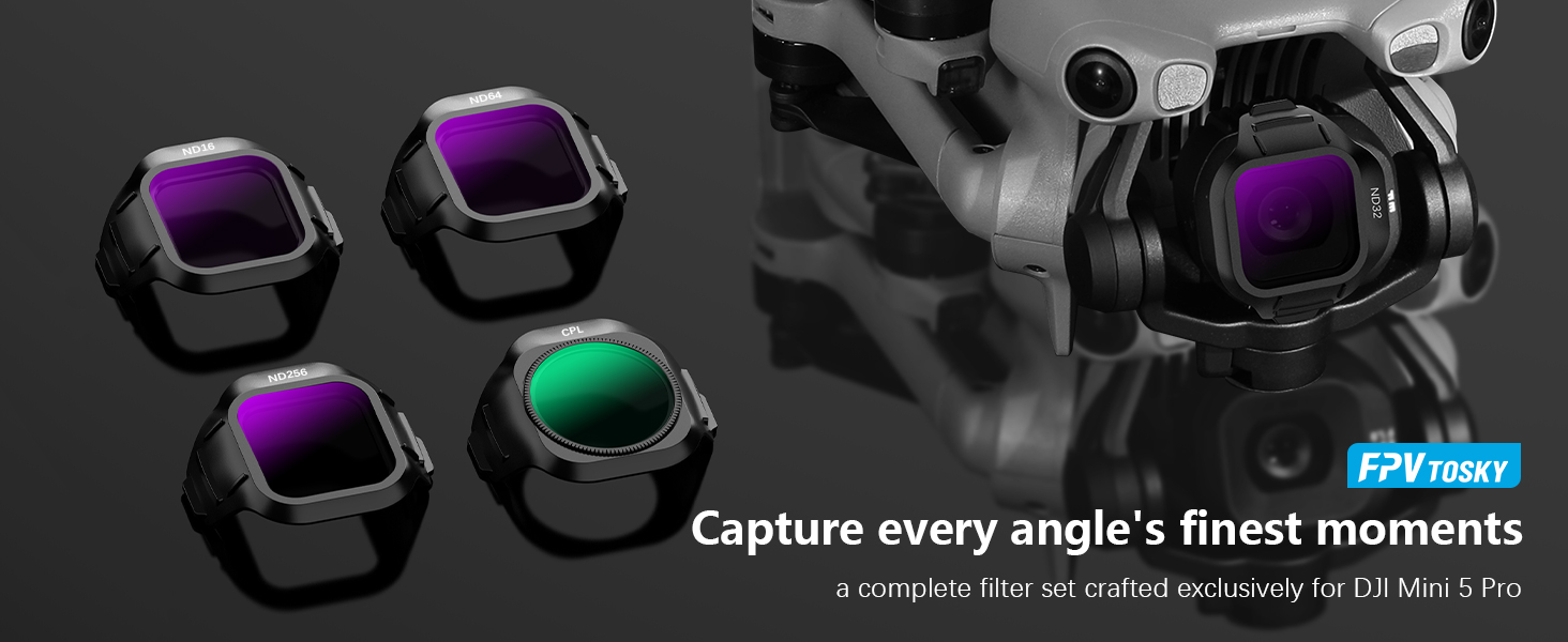 ND filters: The FPVtosky Mini 5 Pro ND filter set can reduce the shutter speed in bright conditions and the amount of light entering the camera sensor, allowing you to capture the natural effect you want in your footage
