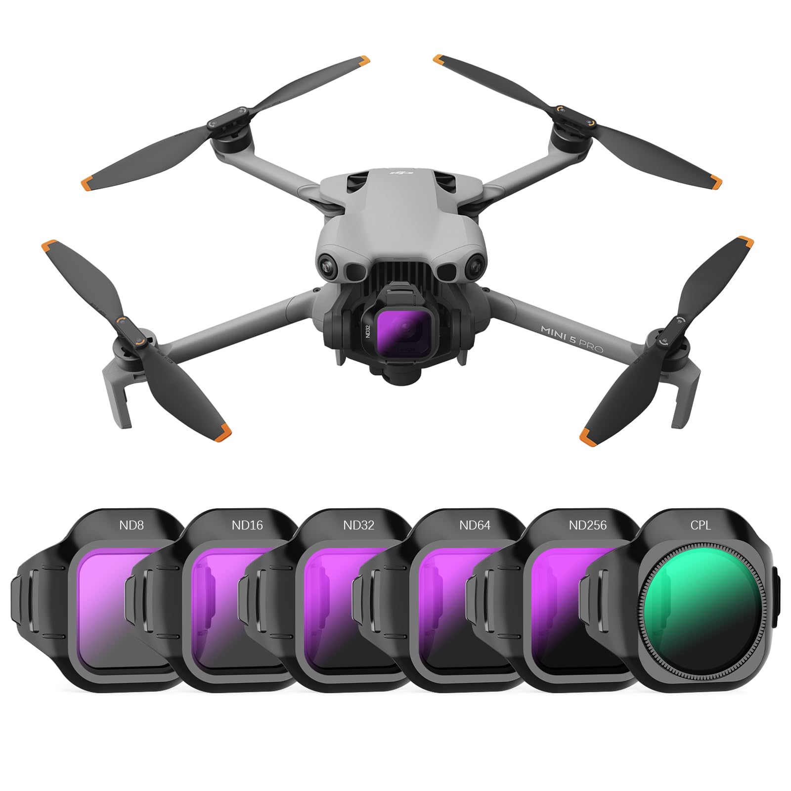 Filter set for DJI Mini 5 Pro: Specially designed for the DJI Mini 5 Pro, 6 pieces: CPL, ND8, ND16, ND32, ND64, ND256 filters. This filter set meets your all-day needs