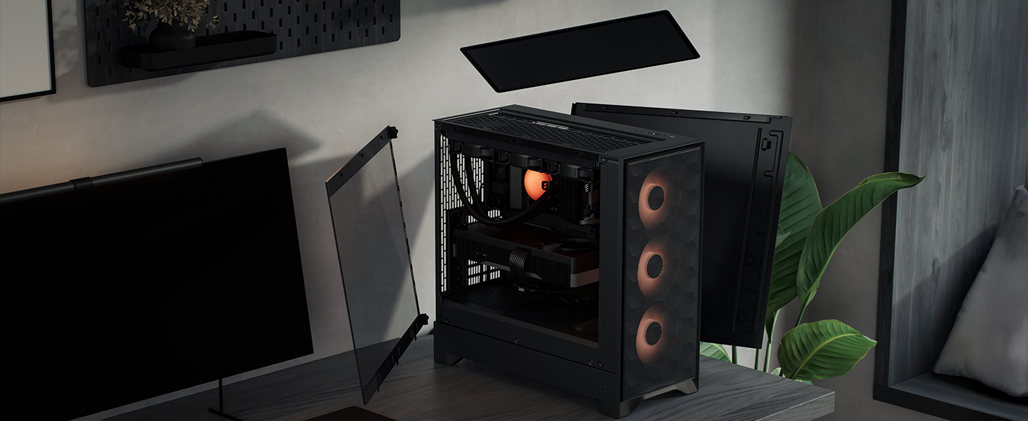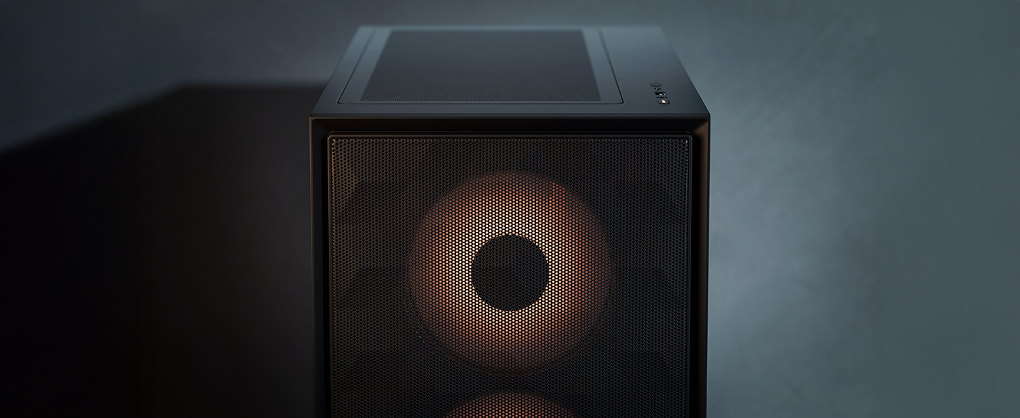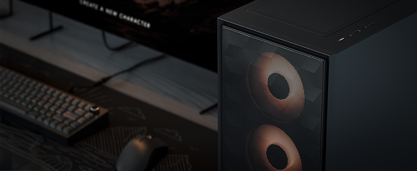 Airflow-focused design with mesh front and top panels and an integrated GPU air guide.