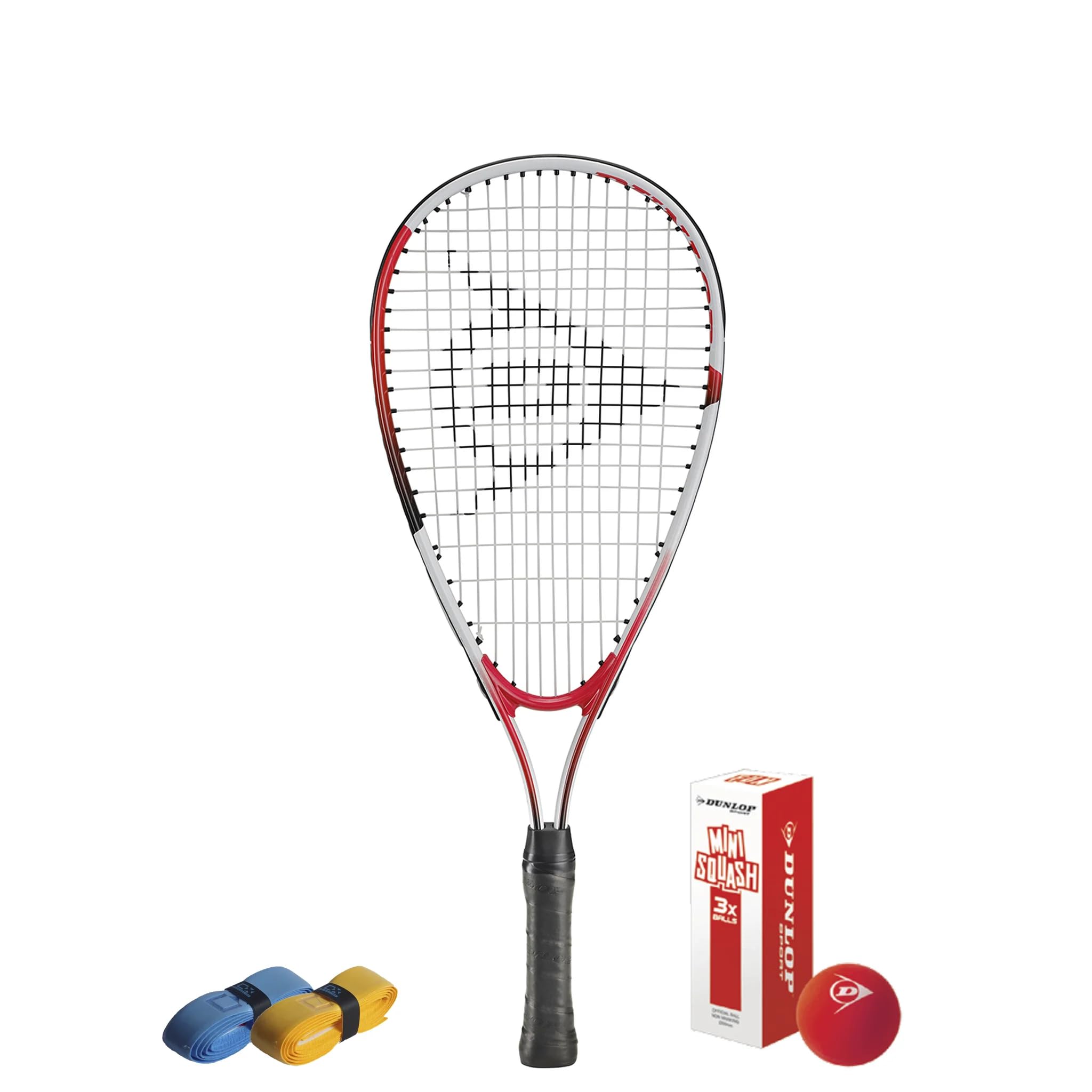 Fun Junior Squash Set – Includes Dunlop Fun Mini Racket (22in), 3 Fun Balls & 2 CX Pro Sport Grips – Exclusive Bundle