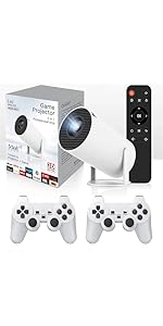 - 【Crisp 4K-Ready Visuals】Experience breathtaking 1080P FHD clarity with full 4K video support. Boasting 350 ANSI lumens and advanced LED lighting, this projector delivers vibrant colors, deep contrast, and sharp detail—perfect for movies, sports, gaming, and streaming in any environment.Over 30000 pre installed retro games – instant entertainment with classic games and built-in controllers