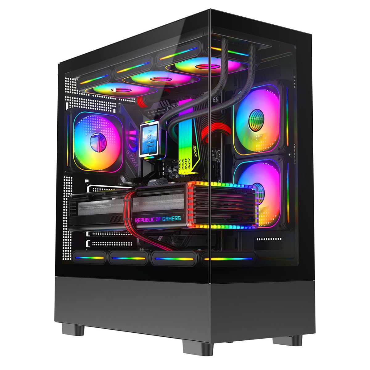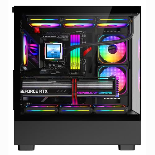 - Optimized Cooling with RGB Design – The black 9-fan RGB case ensures superior airflow to keep your system cool, while the customizable RGB lighting adds a sleek and stylish touch to your setup.