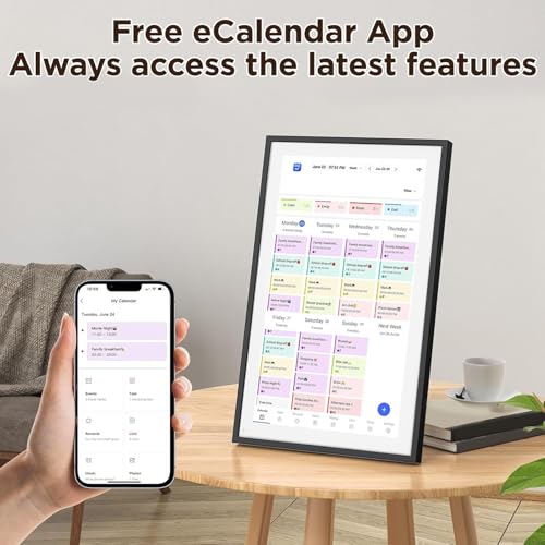 [Easy Setup & Mobile App Integration] Simply plug in the power connect to wifi and your electronic calendar is ready to sync all activities instantly. manage your schedule directly on the device or via a user friendly mobile app for convenience and control.