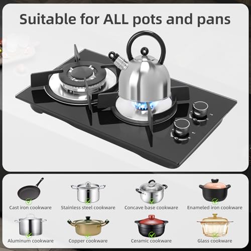 - 【2 Convertible Options】 This gas cooktop can use both natural gas and LPG, meeting your different needs. (This double-burner gas cooktop is initially set up for natural gas. If you want to convert to LPG, please replace the natural gas nozzles with LPG nozzles. An LPG conversion kit is included in the package.)