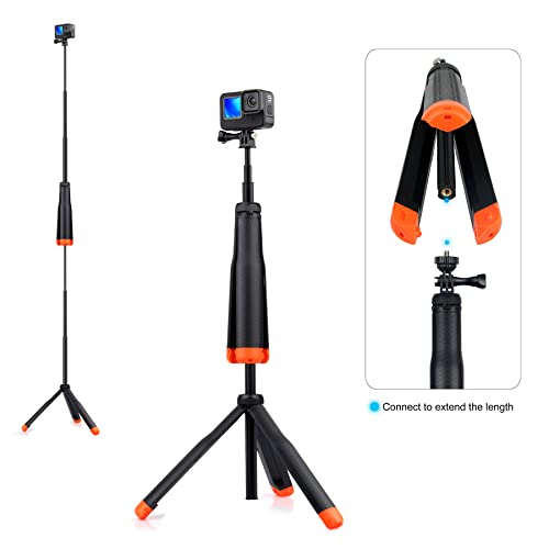 - Wide compatibility: This multipurpose floating selfie stick is compatible with GoPro Hero13, HERO12, HERO11, HERO10, HERO9, HERO8, HERO7, HERO6, HERO5, HERO4, HERO3, HERO2, HERO1, Fusion, Session, Max action camera, Insta360, DJI Action 6, AKASO and most action cameras