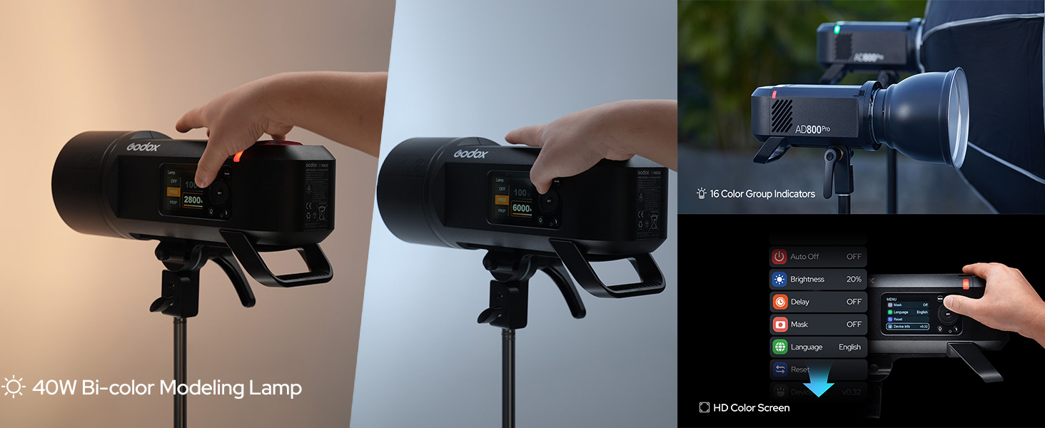 - Advanced Pro Modes: The AD800Pro includes pro-grade modes — Freeze, Stable Color-Temperature, HSS, Multi, and more — so photographers can reliably handle fast-action, product and color-critical work