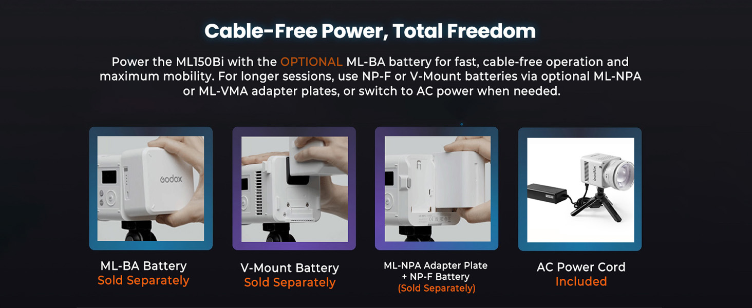Versatile Dual Power Options: Operates via DC input or V-Mount battery, providing complete freedom from cables during field work. The included V-Mount adapter plate supports V-Mount battery types, It can also use other battery like optional ML-BA battery, NP-F battery plate, extending runtime and compatibility for on-the-go filmmakers.