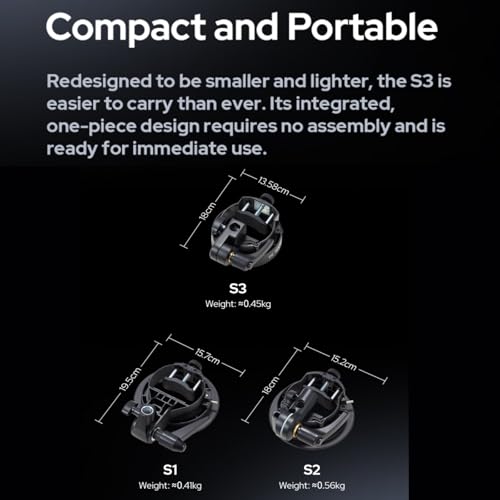 - [Compact and Portable] Redesigned to be smaller and lighter, the s3 is easier to carry than ever. lts integrated, one-piece design requires no assembly and is ready for immediate use.