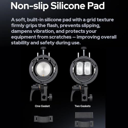 - [Non-slip Silicone Pad] A soft, built-in silicone pad with a grid texture firmly grips the flash, prevents slipping, dampens vibration, and protects your equipment from scratches-improving overall stability and safety during use.