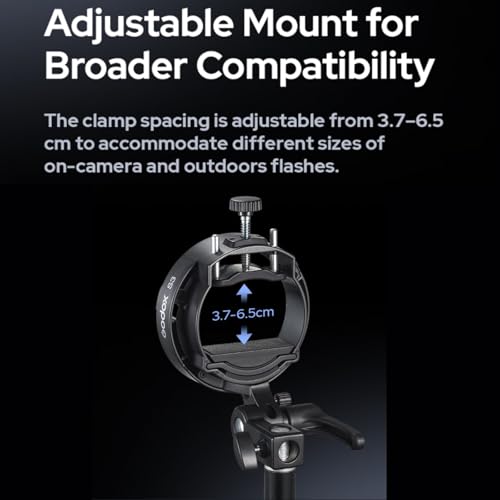 - [Adjustable Mount for Broader Compatibility] The clamp spacing is adjustable from 3.7-6.5cm to accommodate different sizes of on-camera and outdoors flashes.