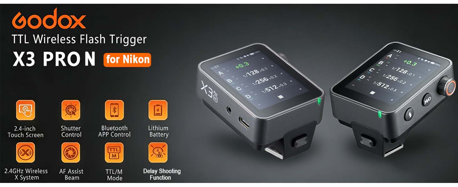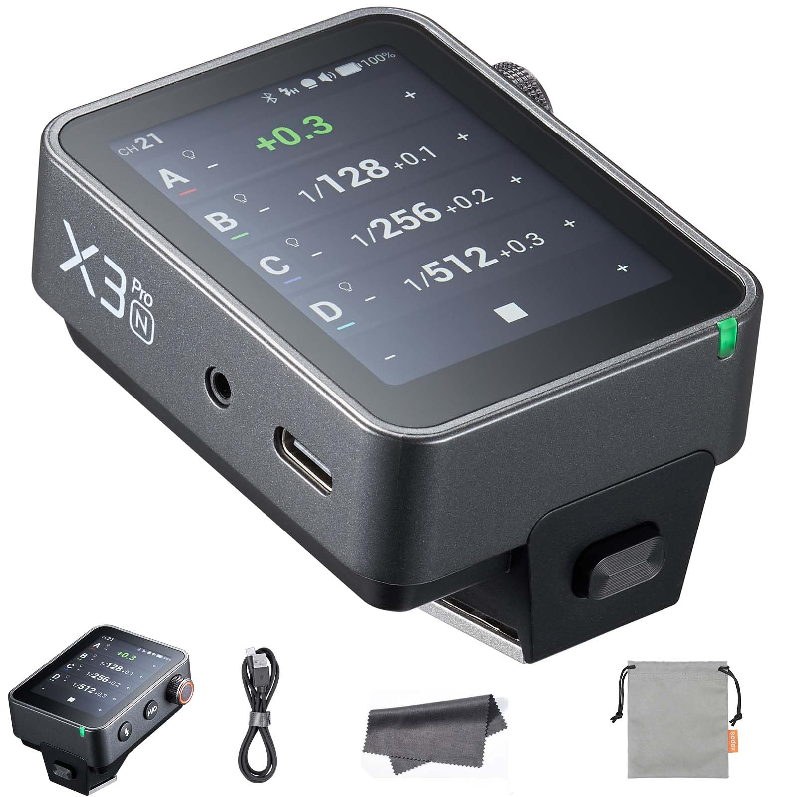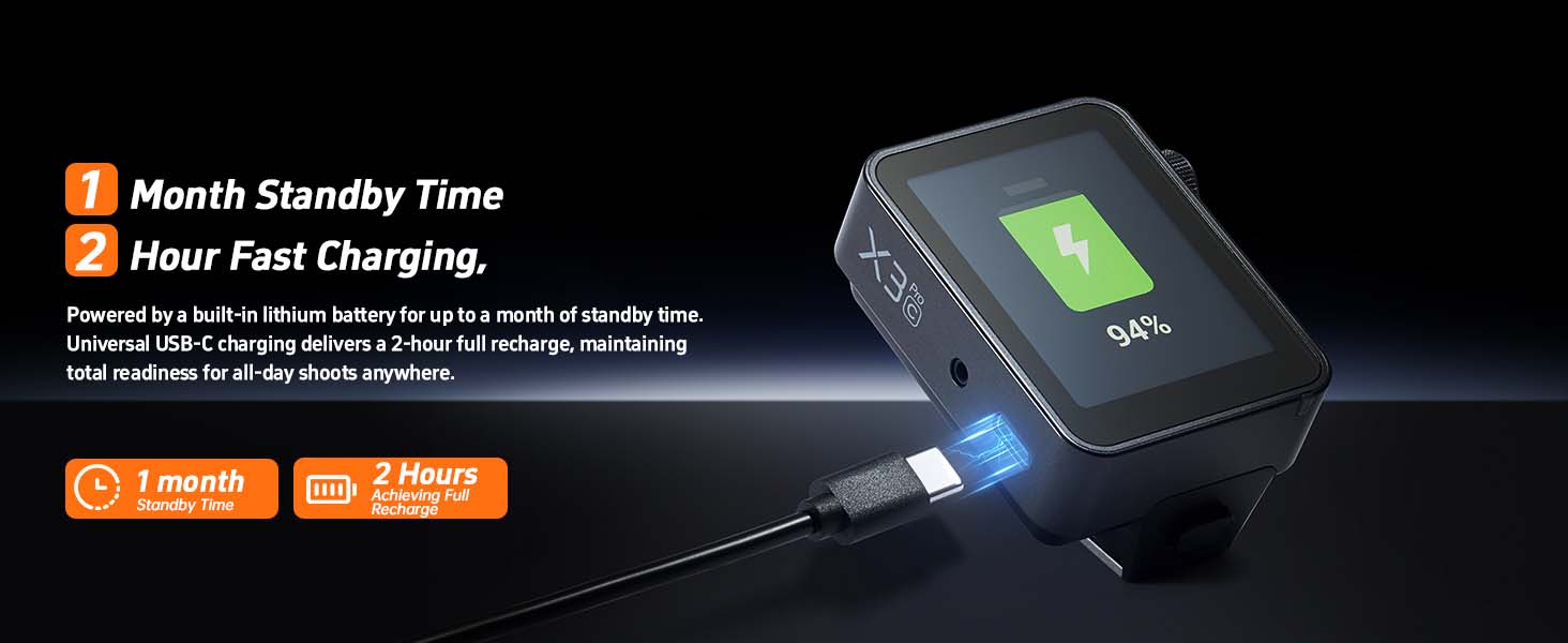 Fast Charging, Long Runtime: Godox X3 Pro N ttl wireless flash trigger powered by a built-in lithium battery for up to a month of standby time, universal USB-C charging delivers a 2-hour full recharge, maintaining total readiness for all day shoots anywhere