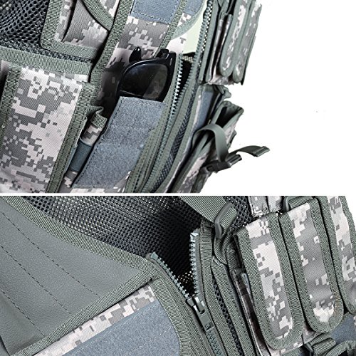 - Double-ply mesh rear allows to equip a hydration bladder, a carrying handle being provided as well as strips across the back for the addition of camouflage material or other pouches