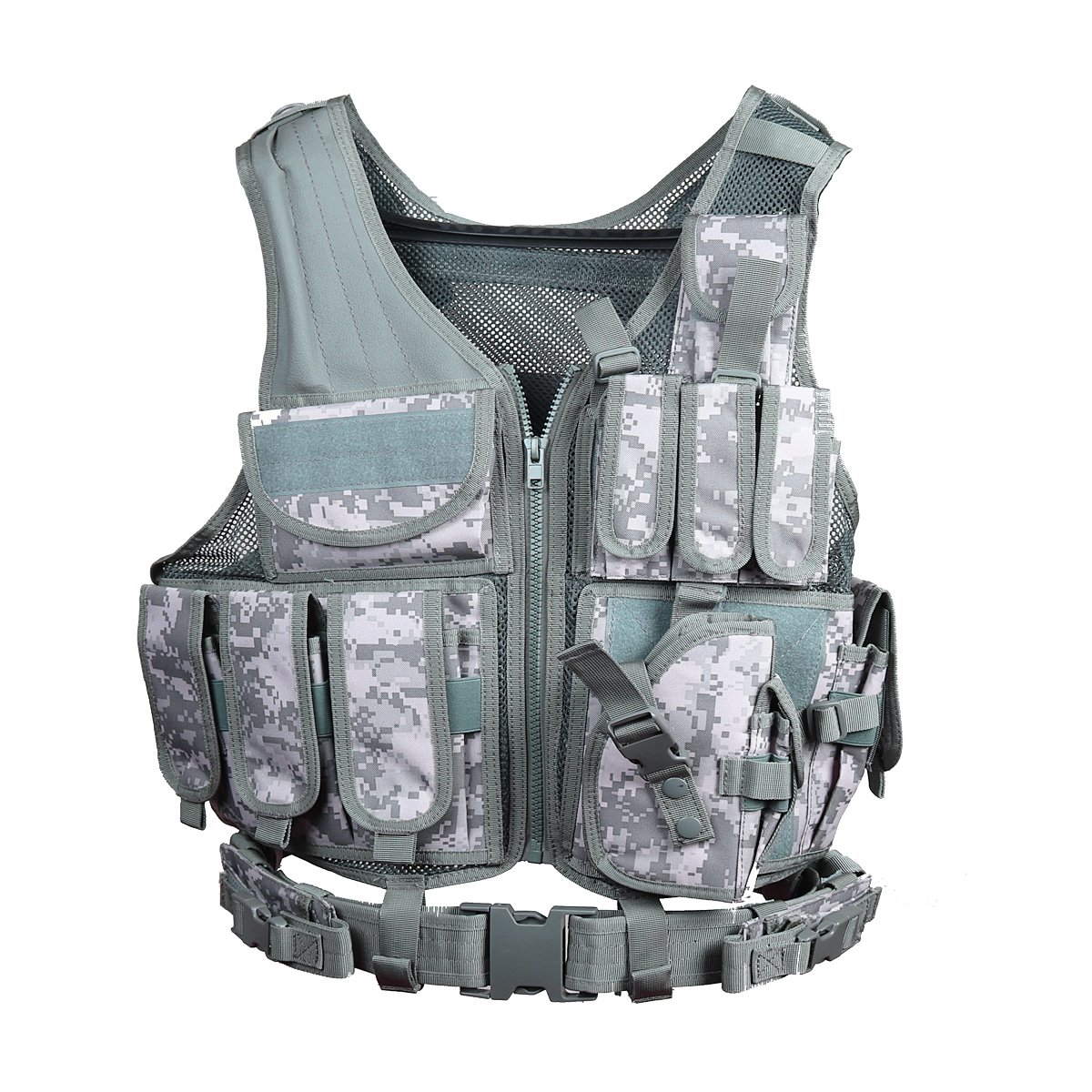 - Mounted on tough breathable 600D nylon mesh material. Vest can be more secured additionally with a pistol belt