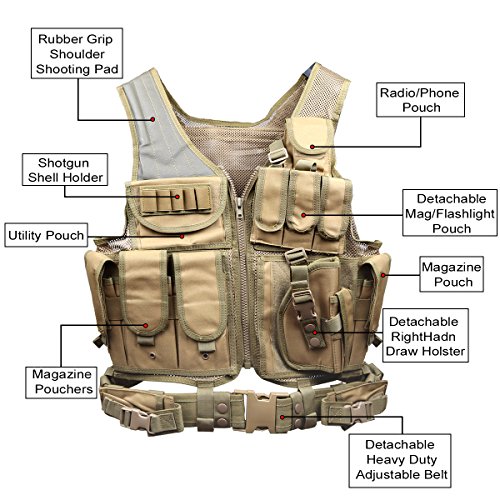 Goetland Tactical Vest Military Modular Vest Ultra-Light Outdoor Hunting Airsoft War Game 600D Polyester Paintball Training Vest for CS Combat Fishing Hiking Adjustable S-XXL
