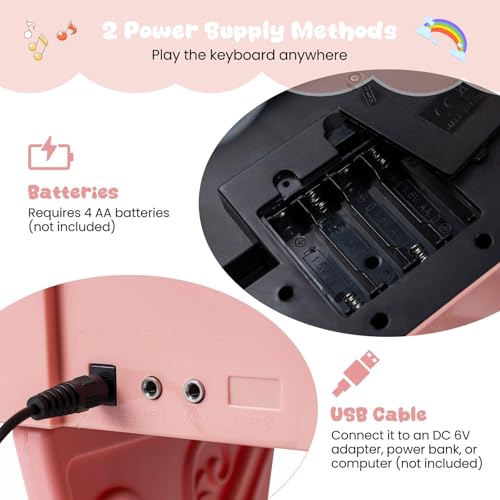 - ✔PLAY MUSIC ANYWHERE- Designed with flexibility in mind, this electric piano offers two power options—either 4 AA batteries (not supplied) for travel-friendly use or connect via USB to a DC 6V adapter, power bank, or computer (not included) for uninterrupted playing indoors.