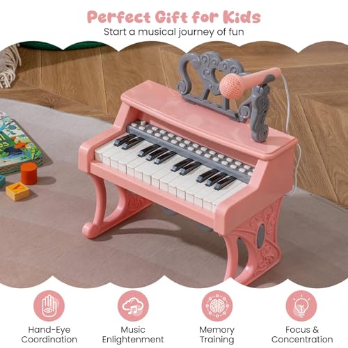GYMAX Kids Piano Keyboard, 25 Keys Children Piano with Music