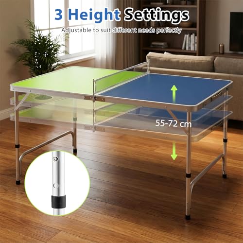 - ✔ADJUSTABLE HEIGHT FOR COMFORTABLE PLAY- With 3 adjustable height settings ranging from 55 to 72 cm, this table tennis table can be perfectly customized to suit players of different ages and preferences. Whether for kids or adults, you can enjoy a comfortable and ergonomic playing experience every time.