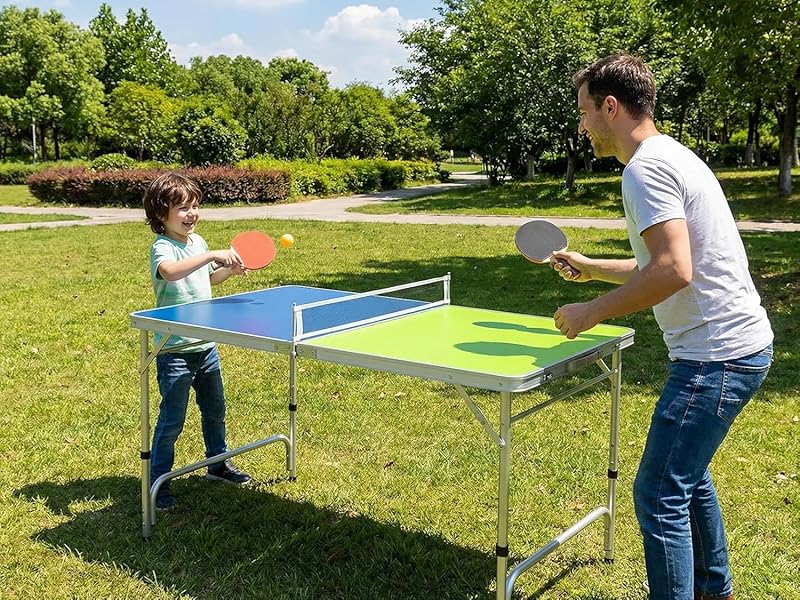 - ✔EASY FOLDING MECHANISM- This portable ping pong table folds down to a compact 76 x 60 x 7 cm size, making storage and transport effortless. Featuring 2 convenient handles, you can easily carry it wherever you want, ensuring great portability for spontaneous games anywhere.