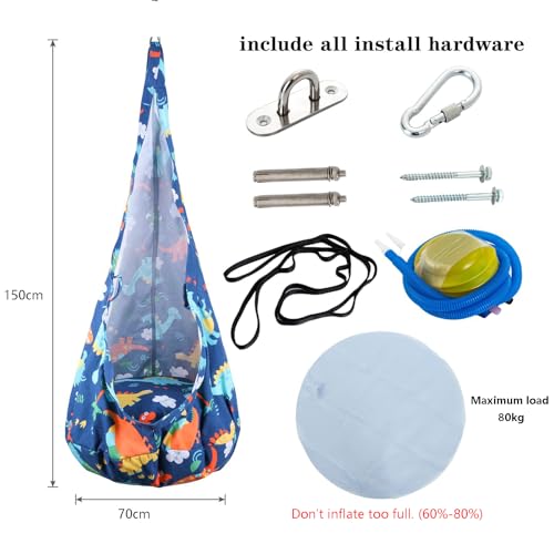 Easy Assembly with Complete Accessories-The package includes the pod swing, inflatable cushion, air pump and all necessary fittings, enabling quick and hassle-free installation with multiple hanging options to suit different spaces.