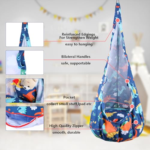Indoor & Outdoor Versatility-Material: Cotton + Polyester.Suitable for bedrooms, studies, balconies, backyards and tree installations, this pod swing chair works seamlessly in both indoor living spaces and outdoor garden areas, meeting diverse play and relaxation needs for kids.