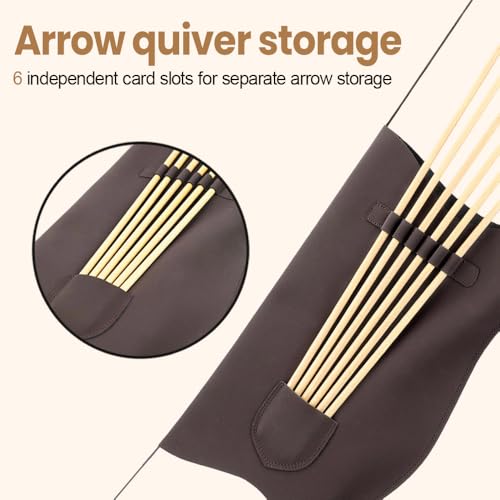 - 【Organized Storage for Bow & Arrows】Store your bow and arrows in separate dedicated compartments. The quiver includes six individual arrow slots to keep feathers and shafts protected, avoiding scratches and tangling during transport.