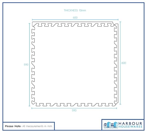 Harbour Housewares Gym Flooring Mats – 60 x 60cm – Pack of 24 Large Black Heavy Duty EVA Non-Slip Rubber Matting Floor Tiles for Exercise, Home, Garage, Pool, Treadmill, Workout Equipme