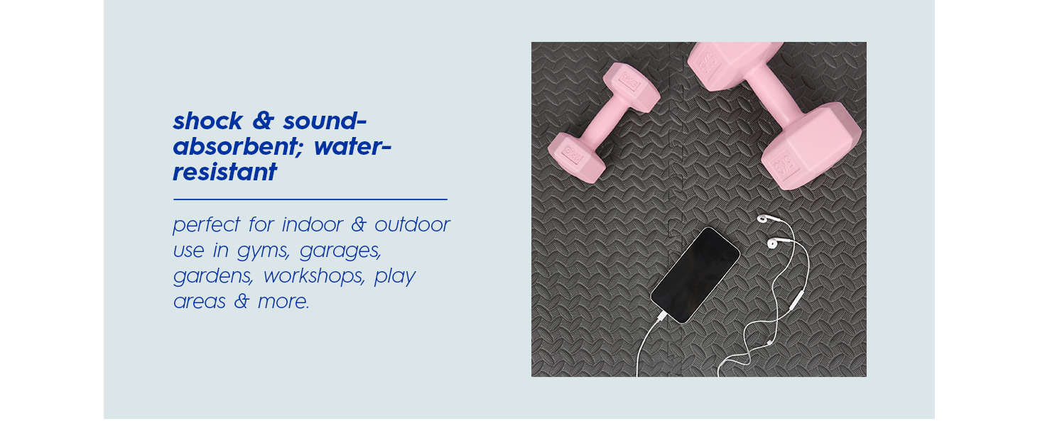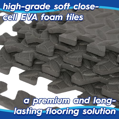 Premium EVA Foam Protection – Crafted from high-grade closed-cell EVA foam, each tile provides durable cushioning that protects hard floors from scuffs, scratches, dents and impact during workouts.
