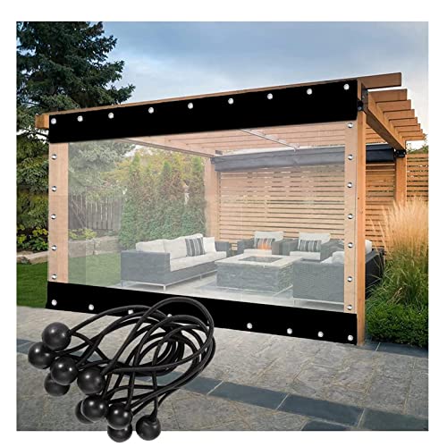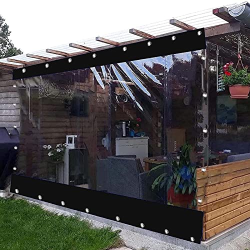 Heavy Duty Waterproof Outdoor Curtain Transparent PVC Tarpaulin with Eyelets for Pergola & Terrace Black Size 2.8×2.2m/9.2×7.2ftSide Panel Cove