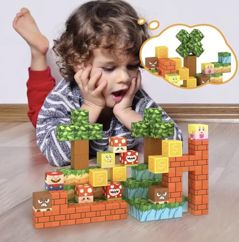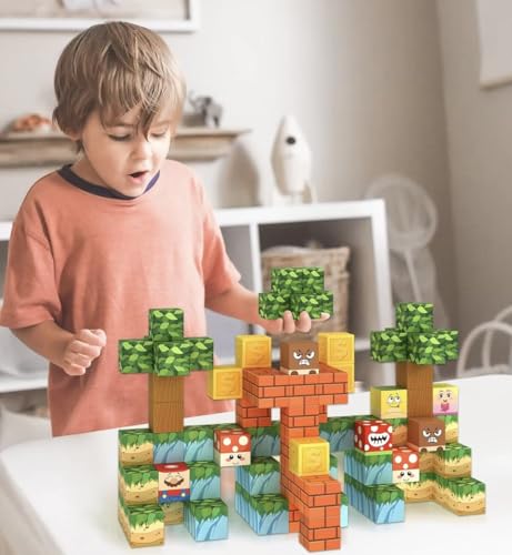 This magnetic building blocks set brings endless creative possibilities to young builders and aspiring architects. With 150 vibrant pieces featuring pixel-style designs inspired by popular block-building games, children can construct elaborate landscapes complete with trees, waterfalls, brick houses, and charming characters. The magnetic connection system makes assembly intuitive and stable, allowing structures to hold together securely whilst remaining easy to reconfigure. Each block features detailed textures including grass, bricks, wood grain, and water patterns that add visual depth to every creation. This STEM-focused Montessori toy encourages spatial reasoning, problem-solving, and fine motor skill development through hands-on play. The included instruction guide provides building inspiration to get started, though the real magic happens when children follow their imagination. Suitable for solo play or collaborative building sessions, this set transforms playtime into an educational adventure. The durable construction ensures these magnetic blocks will withstand countless building sessions, making them a worthwhile addition to any toy collection for children who love construction and creative play.