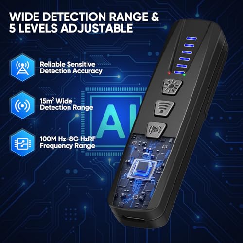 Hidden Spy Camera Detector Upgraded AI – GPS Tracker RF Detector Anti-Spy Bug Detector, Portable Privacy Pen Spy Camera Finder Scanner for Travel, Hotel, Bathroom, Office, Ca