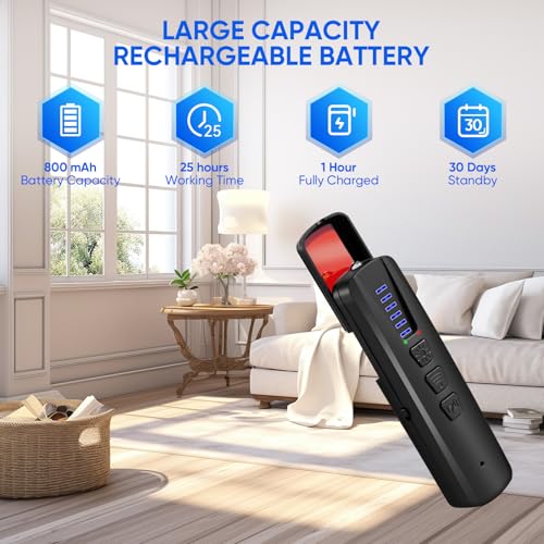 Long-lasting Battery Life: Equipped with an 800mAh rechargeable battery, this spy camera detector supports up to 25 hours of continuous operation on a single 2.5-hour charge. With a 30-day standby time, you can carry it anywhere for travel and daily use.
