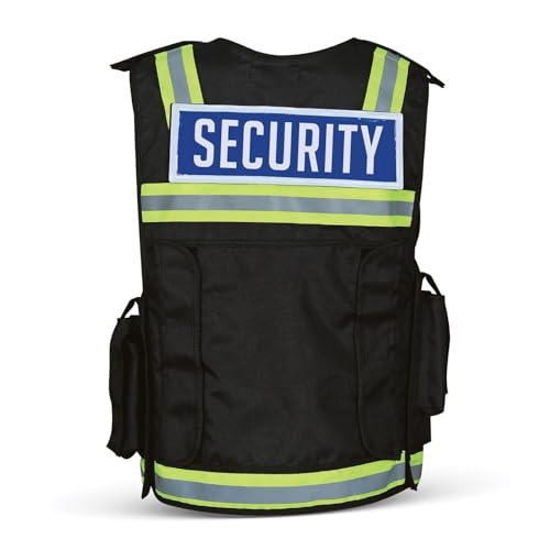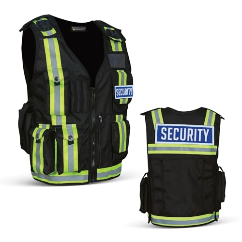 High Vis Black Tactical Airsoft Vest – Mesh Reflective Safety Gear for Outdoor Security – Adjustable Premium Design with Multi Pockets (Black, Security Vest)