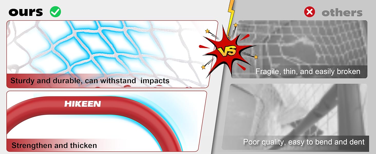 【Long-Lasting Nylon Net】The net is made from high-strength nylon designed to take repeated puck impacts without tearing. Unlike flimsy alternatives, ours maintains its shape and strength over time, so you can focus on your game, not on the gear.