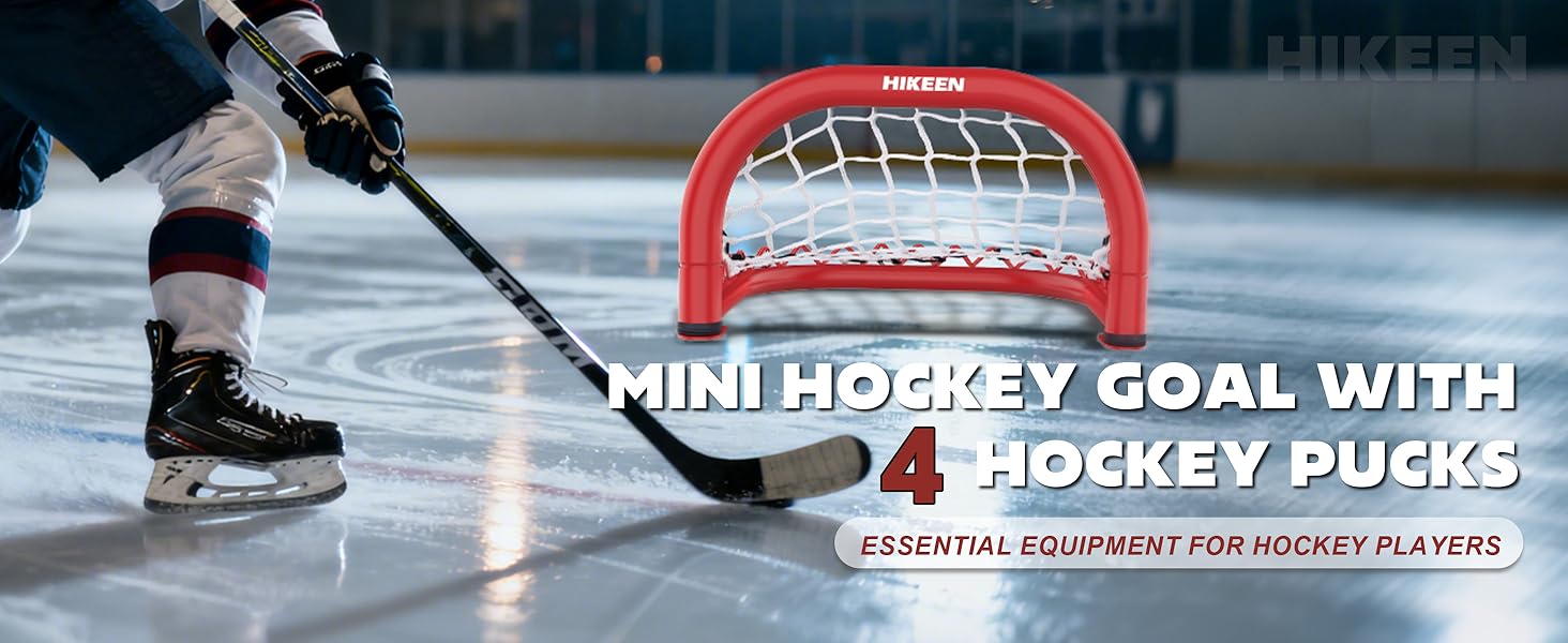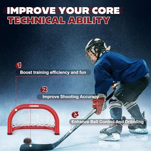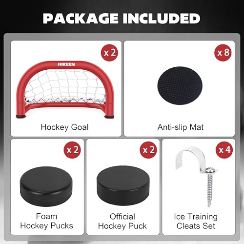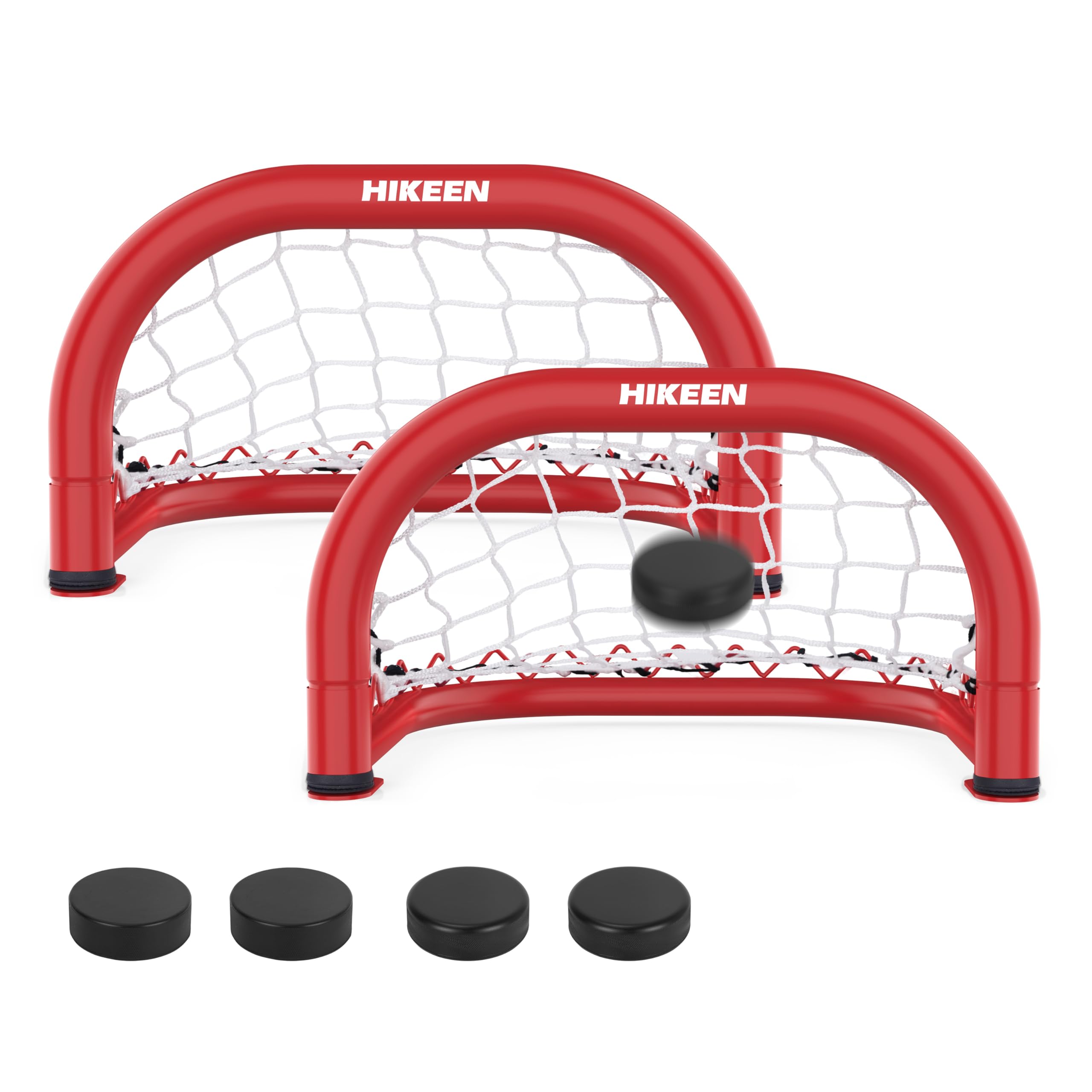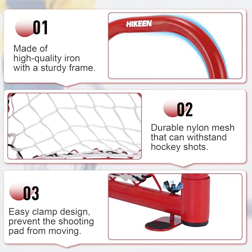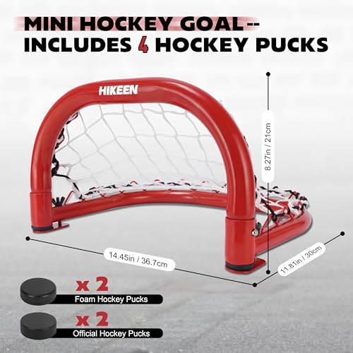 Hikeen 2 Mini Hockey Goal with Durable Iron Frame & Nylon Net and 4 Hockey Pucks Can Withstand Powerful Shooting,Easy Setup Training Equipment for Control,Accuracy Practice