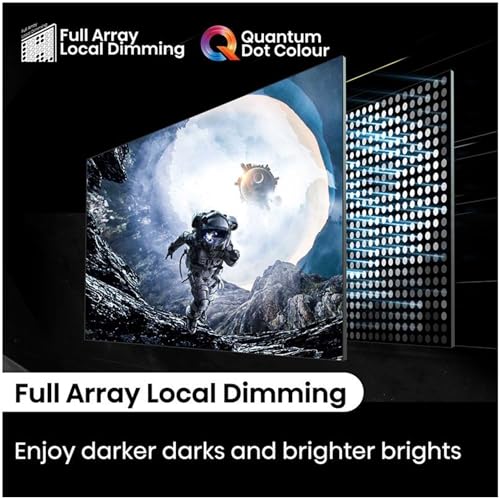 - Full Array Local Dimming – Darker darks. Brighter brights. Ever noticed murky visuals on your TV? With Full Array Local Dimming, every shadow deepens, colors pop, and scenes burst with clarity, ensuring every corner tells its story vividly.