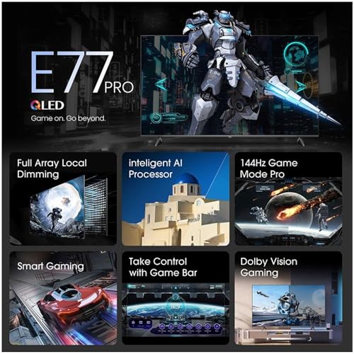 144Hz Game Mode PRO The Next Gen Gaming Set 144Hz Game Mode Pro automatically fires up when a gaming connection is detected through ALLM. With 144Hz VRR experience the smoothest possible game play enhanced further with ultra-low input lag. Image tearing and stuttering are also a thing of the past thanks to AMD Freesync Premium, specifically created to deliver the most responsive and detailed gaming experience yet. Quantum Dot Colour Billion+ shades of vivid colour Experience a visual treat with Quantum Dot Colour. Every frame is rich, vibrant, and true-to-life, ensuring every color, from the most subtle to the most vibrant, stands out. All your fave shows, all in one place Not only is it like having all your trusty TV apps rolled into one, it’s a reeeeeaaally great way to easily find and watch the shows you already love and the ones we know you’re about to be obsessed with. One press of the Freely button on your remote. and you’re in! Full Array Local Dimming Darker darks. Brighter brights. Ever noticed murky visuals on your TV? With Full Array Local Dimming, every shadow deepens, colors pop, and scenes burst with clarity, ensuring every corner tells its story vividly. Gaming in Dolby A whole new world of gaming Dolby transforms gaming. Witness unmatched visuals and be engulfed in immersive sound. See brighter, hear clearer, and game like never before. Step in, play differently. Total HDR Solution See all the content you love in dazzling details Frustrated with HDR compatibility? Total HDR Solution decodes every format, from Dolby Vision IQ through HDR10+, resulting in perfect detail, enhanced colors, and deeper blacks no matter the content. Witness content in dazzling detail, every time. Dolby Vision IQ Step into the story with Dolby Dolby Vision is now even better with Dolby Vision IQ, capable of higher resolution video, even brighter colors, and a wider range of lighting effects. The same top-quality HDR results as before, with the added benefit of dynamically adapting the scene to the ambient light, correcting highlights and brightening dark scenes for the optimal picture no matter what’s going on outside. Dolby Atmos Go Inside the Story Dolby Atmos delivers the ultimate immersive listening experience allowing you to feel and hear sounds from all directions. Enjoy immersive, natural and true to life sound. It’s so realistic you’ll feel every moment as if you are actually there. 2.1 ch Built-in Subwoofer Deep bass, integrated for immersive sound To amplify Dolby Atmos & DTS Virtual X, our E7N PRO features a powerful 2.1 surround sound setup punchy built in subwoofer creating a truly engaging audio experience that you can feel. Game Bar Dominate with optimized gameplay Enter your gaming dashboard – Game Bar. Real-time metrics like FPS, HDR, and VRR are right at your fingertips. Adjust screen position or aspect ratio on the fly. It’s all about having the data and controls to optimize your game. Experience precision, command, and an edge over the rest. AI Sports Mode Claim the best seats in the stadium Tired of muffled commentary and blurry action? AI Sports Mode, MEMC and Ultra Motion leap to the rescue. Automatically detecting the game, it enhances visuals and audio for a stadium-feel. Now, enjoy every match, every play, flawlessly. Filmmaker Mode Watch your movies and TV shows the way the filmmakers intended Filmmaker Mode is a picture mode designed to reduce the amount of post-production processing applied to movies and TV shows. So you can enjoy content, as the filmmaker’s intended. Voice Control Full control in the palm of your hand Try the Hisense Voice Remote and take TV control to the next level of convenience. A single button press activates voice commands. Effortlessly navigate shows, adjust volume, or interact with virtual assistants. VIDAA SMART TV Easy. Fast. Secure. Global and Local Entertainment Powered by the latest VIDAA Smart platform it offers the most intuitive, fully customisable and secure OS, allowing you to watch your favourite content your way. Access all the entertainment you love from Disney+, Netflix, Prime Video, YouTube and many more. Always Connected Fit, Connect, Enjoy Newest consoles, faster data transmission and lower lag. Add all external devices with state of the art wireless and wired connectivity. Dual Band WiFi, Full HDMI 2.1, AirPlay, Bluetooth, Share to TV, WISA Ready