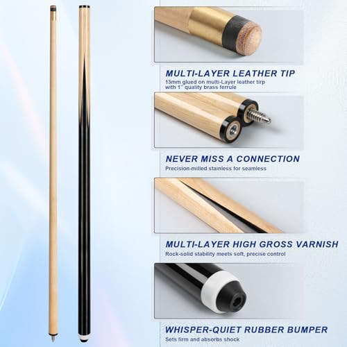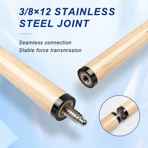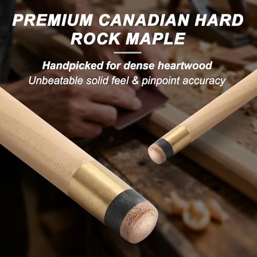 Premium Canadian Hard Rock Maple Construction: Crafted from the densest heartwood of Canadian maple for exceptional durability and warp resistance. Ensuring pool cue consistent straightness and powerful shot control even after prolonged use
