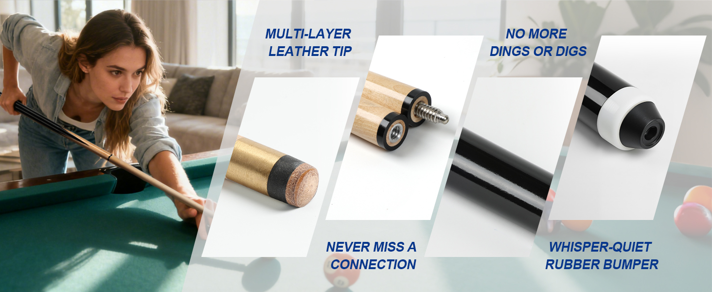 Enhanced Stability with High-Density Core: Selectively uses the hardest segments of rock maple in the forearm and shaft of the pool sticks to minimize deflection. Reinforced cue sticks joint and ferrule prevent tip separation or splintering