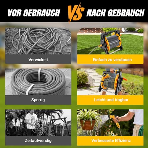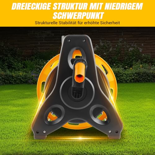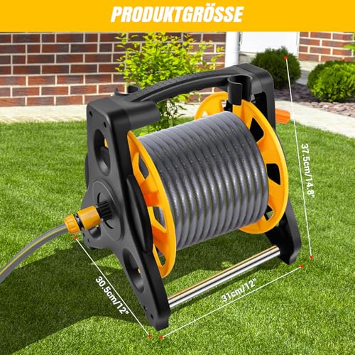 - Compact and durable: the portable compact hose box can be used as a standalone unit – it is easy to move and carry. Made from durable, durable plastic, it has a convenient folding wind-up handle. The water supply is via this hose box.