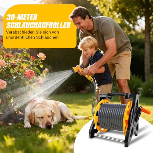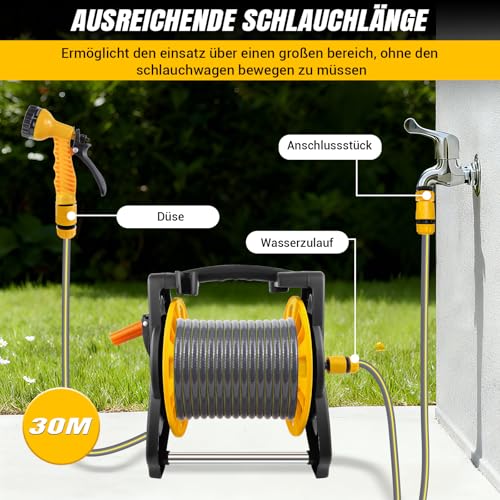 Hose Box, Garden Hose Box with Garden Hose, 30 m Heavy Duty Hose Trolley – 7 Spray Modes, Wall Mountable, UV-Resistant Hose (Hose Roll + 30 m Hose Pipe)