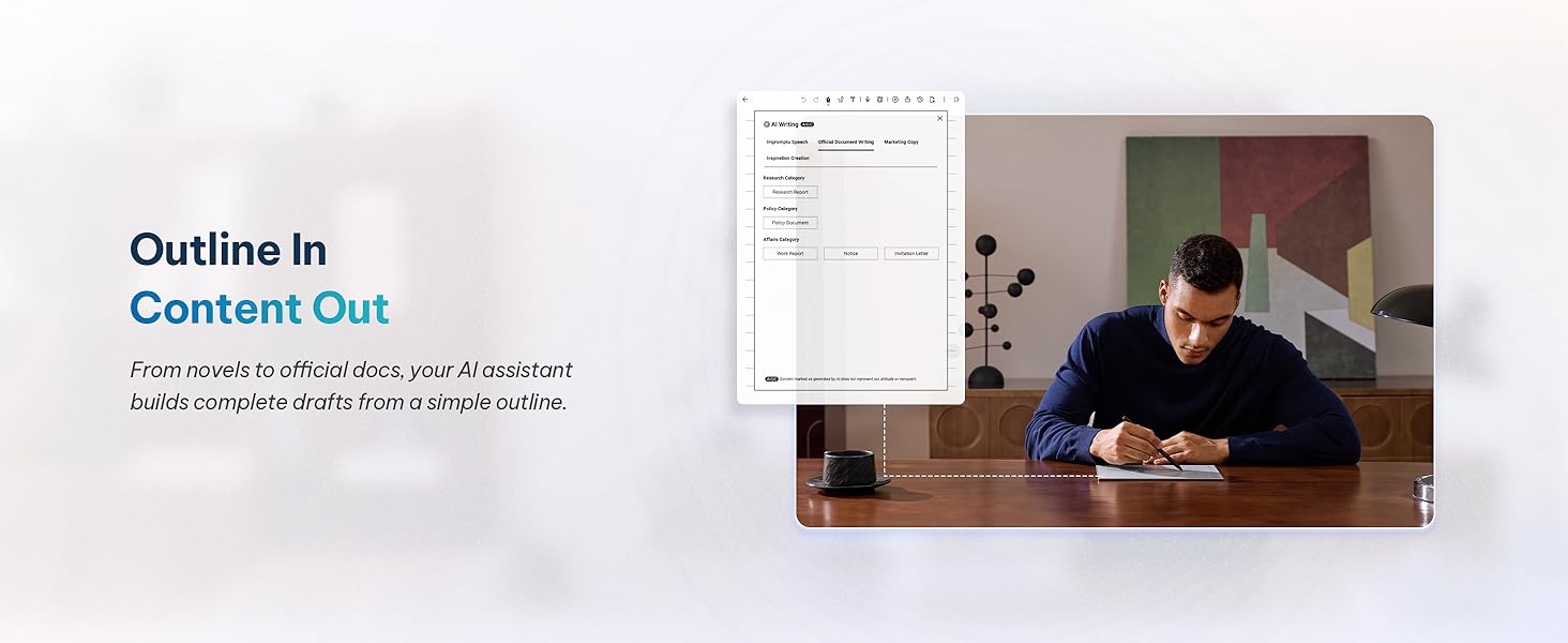 A Sanctuary for Your Eyes and Mind:Designed for extended reading and writing sessions. The anti-glare E Ink screen is certified for eye comfort, providing a paper-like reading experience without the blue light emissions of a standard tablet. It also blocks distracting notifications from your phone via its dedicated design, allowing for deep, focused work.