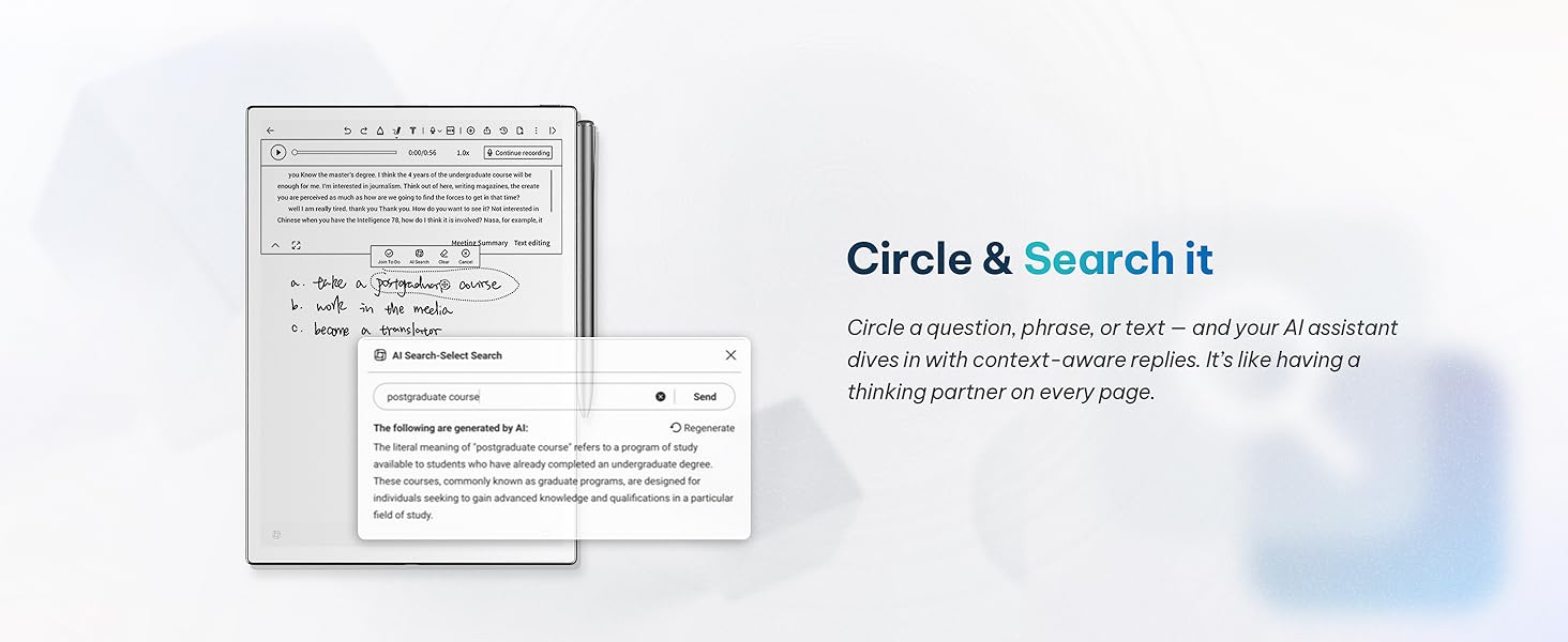 Seamless Connectivity and All-in-One E-Reader:Easily sync your notes, transcripts, and documents to the cloud and access them across all your devices. With extensive support for various e-book formats (including EPUB, PDF, MOBI) and a massive built-in storage, it also serves as a premium e-reader, consolidating your office and reading needs into one elegant, portable device.