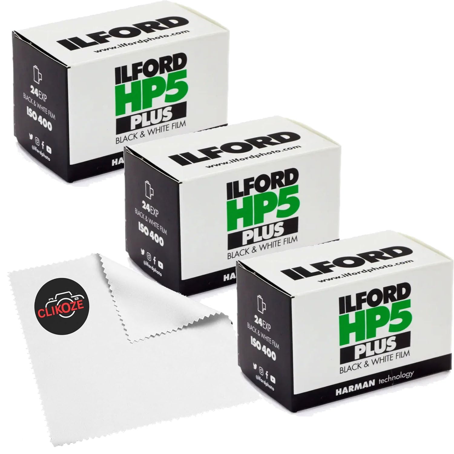 Ilford HP5 Plus Black & White 35mm Film Triple Pack (3 x 24 Exposures) ISO 400 Negative Film + Clikoze Microfiber Lens Cloth