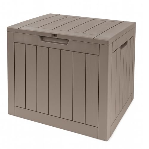 Indoor/Outdoor 120L Storage Box. Weather-Resistant. Plastic Wood Plank Effect Garden, Balcony, Tool, Toy, Parcel or General Storage Box. Large Capacity. Black or Stone (Stone)