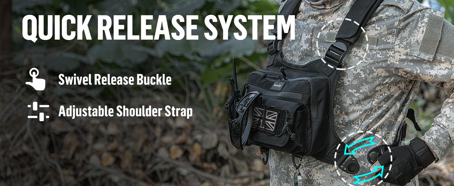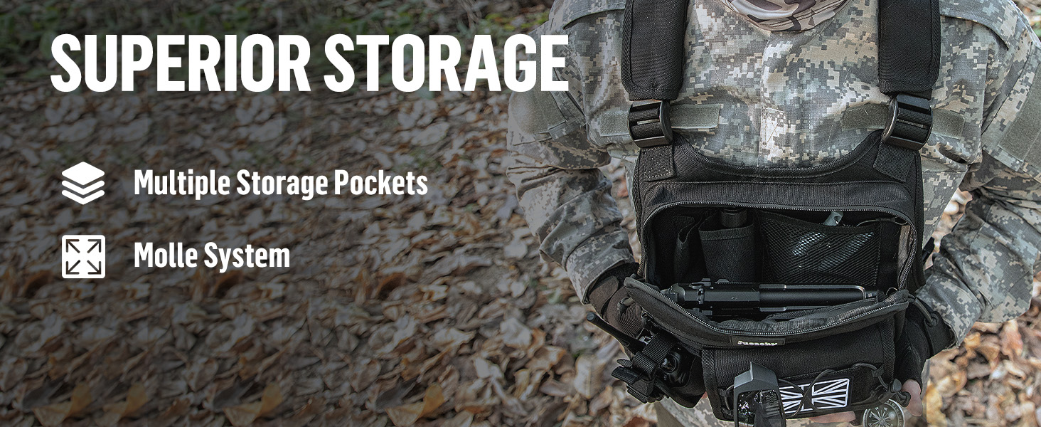 - 【Comfortable & Breathable】The tactical chest bag for men features breathable mesh padding and high quality oxford fabric,ensuring maximum airflow against your back while providing comfort. With four adjustable straps,this chest vest fits snugly and can be tailored to your body for an almost weightless experience,no matter how much gear you carry.